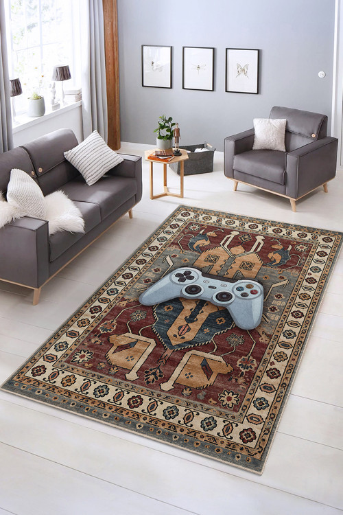 Etnik desenleriyle yaşam alanınıza özgün bir hava katacak olan kaymaz tabanlı salon halımız, makinede yıkanabilir özelliği sayesinde temizlikte büyük kolaylık sağlıyor.