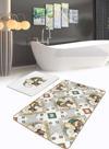 Fil desenli kahverengi ve bej renk kombinasyonuna sahip bu 2'li banyo paspas seti, banyonuza sıcak ve şık bir dokunuş katmak için ideal bir seçimdir.
