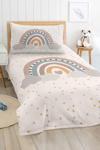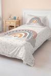 Gökkuşağı, bulutlar ve yıldızlarla bezeli tasarımıyla bu pike takımı, çocuk ve genç odaları için özel olarak üretilmiştir.