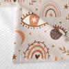Göz ve gökyüzü desenleriyle süslenmiş bu piké takımı, çocuk ve genç odası için mükemmel bir seçimdir.