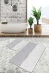 Gri ve beyaz renklerin uyumuyla geometrik desenlerin şık birleşimini sunan 2'li banyo paspas seti, banyonuzun dekorasyonuna zarafet katmak için ideal bir seçimdir.