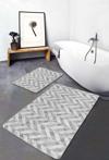 Gri ve beyaz renklerde çizgili, modern ve minimalist tasarıma sahip 2'li banyo paspas seti, şıklığı ve fonksiyonelliği bir araya getirir.