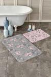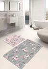 Gri ve pembe tonlarında zarif çiçek desenleriyle tasarlanmış bu 2'li banyo paspas seti, şıklığı ve fonksiyonelliği bir arada sunar.