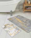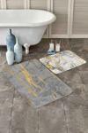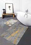 Gri ve sarı renklerin mermer desenli modern tasarımı ile banyolarınıza şıklık katacak Kaymaz Taban Yıkanabilir 2'li Banyo Paspas Seti.