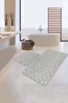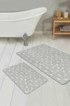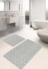 Gri zeminde beyaz geyik ve kar tanesi desenlerinden oluşan bu 2'li banyo paspas seti, modern ve şık tasarımıyla banyonuza doğal bir hava katıyor.