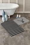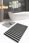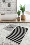 RealHomes Gri Zeminde Siyah Çizgili Ve Geyik Desenli 2'Li Kaymaz Taban Yıkanabilir Banyo Paspas Seti