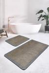 RealHomes Kahverengi Zeminde Siyah Beyaz Kareli Çerçeveli 2'Li Kaymaz Taban Yıkanabilir Banyo Paspas Takımı