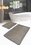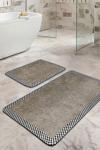 Kahverengi zeminde siyah beyaz kareli çerçeve ile tasarlanmış bu 2'li banyo paspas seti, modern ve şık banyolar için idealdir.