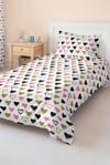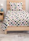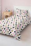 Kalp desenli tek kişilik çocuk ve genç odası pike takımı, yatak odanızı renklendirmek ve konfor sağlamak için idealdir.