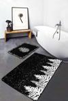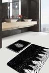 Kara zemin üzerinde dikkat çeken beyaz çam ağaçları ve kozalak desenleriyle tasarlanmış bu 2'li banyo paspas seti, banyonuza şıklık ve doğallık katıyor.