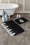 RealHomes Kara Zemin Üzerinde Beyaz Çam Ve Kozalak Desenli 2'Li Kaymaz Taban Yıkanabilir Banyo Paspas Seti