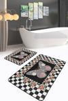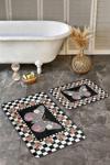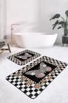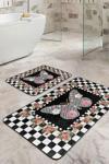 Kareli siyah beyaz zemin üzerinde zarif pembe güller ve kelebek deseniyle tasarlanmış bu 2'li banyo paspas seti, banyonuza şıklık ve canlılık katmak için ideal bir seçimdir.