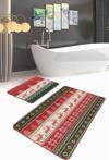 Kırmızı ve beyazın hakim olduğu renk paletiyle Noel temalı geyik desenli bu 2'li banyo paspas seti, banyolarınıza sıcak ve şık bir atmosfer katar.