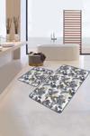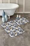 Lacivert ve altın renklerin öne çıktığı tropikal yaprak desenli bu 2'li banyo paspas seti, banyolarınıza şıklık ve ferahlık katacak.