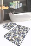 RealHomes Lacivert Altın Renkli Tropikal Yaprak Desenli 2'Li Kaymaz Taban Yıkanabilir Banyo Paspas Seti