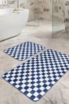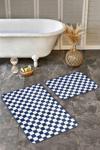 RealHomes Lacivert Beyaz Kareli Modern Geometrik Desenli 2'Li Kaymaz Taban Yıkanabilir Banyo Paspas Takımı