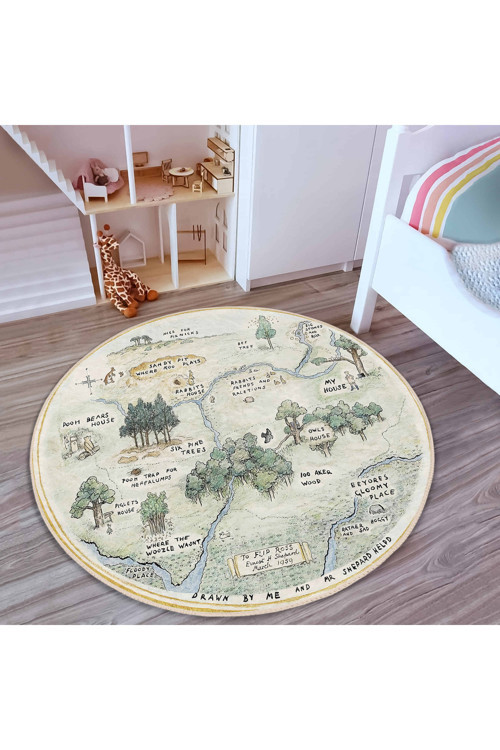RealHomes Masal Temalı Yuvarlak Çocuk Odası Halısı - 3D Dijital Baskılı Yıkanabilir Kaymaz Taban Halı