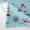 - **Renk ve Desen:** Mavi zemin üzerine deniz aracı, yıldız, krab ve deniz feneri desenleri.