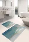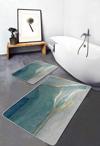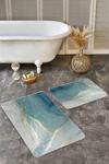 Mavi ve gri tonlarda mermer desenli bu 2'li banyo paspas seti, modern ve şık tasarımıyla banyonuza estetik bir dokunuş sağlar.