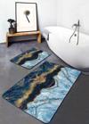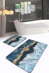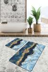 Mavi ve siyah tonlarının şık mermer deseniyle buluştuğu bu 2'li banyo paspas seti, banyolarınıza zarif ve modern bir görünüm kazandırır.