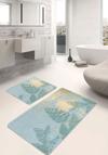 Mavi zemindeki yeşil çam ve sarı detaylı tasarıma sahip bu 2'li banyo paspas seti, banyonuzun dekorasyonuna doğal ve şık bir dokunuş katar.