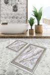 Banyonuzda şıklık, güvenlik ve hijyen arıyorsanız, bu dayanıklı ve estetik 2'li mermer desenli kaymaz tabanlı yıkanabilir paspas takımı tam size göre.