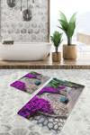 Mor çiçeklerin ve doğal taş desenlerinin buluştuğu bu 2'li banyo paspas seti, banyonuza eşsiz bir doğa ve bahar hissi katacak.
