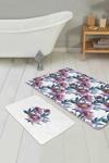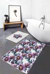 Mor çiçekler ve yeşil yapraklardan oluşan zarif desenle tasarlanmış bu 2'li banyo paspas seti, banyonuza estetik ve şıklık katmak için ideal bir seçimdir.
