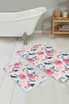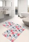 Pembe ve beyaz güllerin zarifçe süslendiği, mavi kelebeklerin bulunduğu eşsiz çiçek ve kelebek desenli 2'li banyo paspas seti, banyonuza doğadan ilham alan şıklık ve ferahlık katıyor.