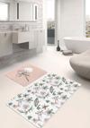 Pembe ve beyaz zemin üzerinde yeşil yapraklar ve zarif çiçekler ile süslü bu 2'li banyo paspas seti, banyonuza şıklık ve doğallık katacak canlı bir tasarım sunar.