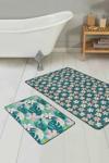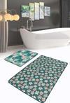 RealHomes Pembe Çiçekli Ve Yeşil Yapraklı Doğal Desenli 2'Li Kaymaz Taban Yıkanabilir Banyo Paspas Seti