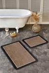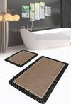 Puantiye desenli siyah bej renk kombinasyonuyla tasarlanmış bu 2'li banyo paspas seti, banyonuza şık ve modern bir dokunuş katıyor.