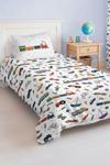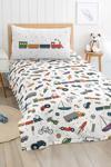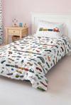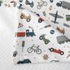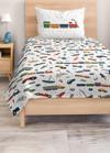 Renkli araçlar desenli pike takımı, çocuk ve genç odaları için mükemmel bir seçimdir.