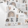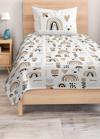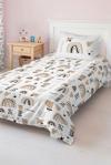 Renkli gökyüzü ve çiçek desenleriyle bezenmiş bu pike takımı, çocuk ve genç odaları için tasarlanmış bir pike takımıdır.