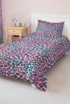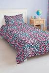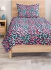 Renkli leopar desenli bu tek kişilik çocuk ve genç odası pike takımı, hem dekoratif hem de günlük kullanım için idealdir.
