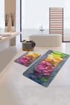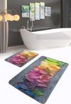 Renkli yapraklar desenli, gri zeminli bu 2'li banyo paspas seti, modern ve doğa temalı tasarımıyla banyolarınıza canlılık katar.