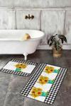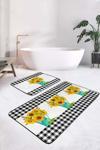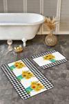 RealHomes Sarı Ayçiçeği Ve Siyah-Beyaz Kareli Desenli 2'Li Kaymaz Taban Yıkanabilir Banyo Paspas Seti