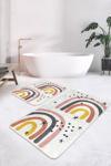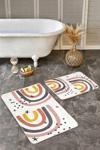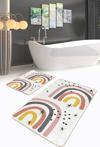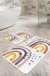 RealHomes Sarı-Pembe Gri Renkli Retro Gökkuşağı Desenli 2'Li Kaymaz Taban Yıkanabilir Banyo Paspas Takımı