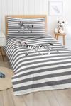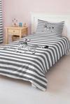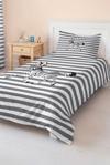 Şeritli ve zebra desenine sahip bu pike takımı, çocuk ve genç odası için özel olarak tasarlanmış bir üründür.