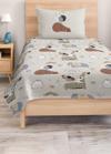 Sevimli hayvanlar desenine sahip bu pike takımı, çocuk ve genç odası için tasarlanmış bir pike takımıdır.