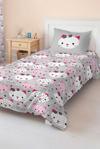 Sevimli kedi desenleriyle süslenmiş bu pike takımı, çocuk ve genç odaları için tasarlanmış bir pike takımıdır.