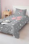 - **Renk ve Desen:** Sevimli panda figürü ve pembe balonlarla süslenmiş, gri arka plan üzerindeki bu desen, odanıza keyifli bir hava katacaktır.