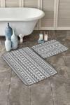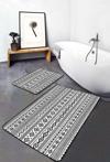 Siyah ve beyaz renklerin çizgili etnik desenlerle harmanlandığı bu modern 2'li banyo paspas seti, banyonuza şık ve ferah bir atmosfer katar.