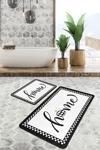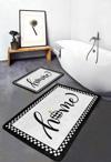 Siyah ve beyaz renklerin zarif uyumuyla tasarlanmış damalı kasnak desenli 2'li banyo paspas seti, banyonuza şıklık ve modern bir hava katar.
