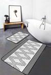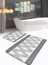 Siyah beyaz damalı ve zigzag desenli bu şık 2'li banyo paspas seti, modern ve minimal tasarımıyla banyonuza estetik bir dokunuş sunar.