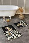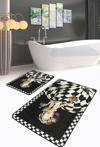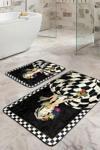 Siyah beyaz kareli desen üzerine renkli çiçek süslemeleri ve zarif kadın figürüyle tasarlanmış bu 2'li banyo paspas seti, banyonuzun dekorasyonuna sanatsal ve şık bir dokunuş katıyor.