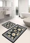 Ev şıklığını işlevsellikle buluşturan bu siyah-beyaz kareli papatya desenli paspas seti ile banyonuza yenilik getirin.