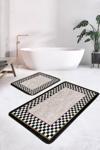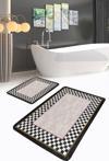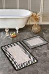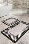 Siyah beyaz kareli desenin çevrelendiği şerit detaylarıyla modern ve şık bir tasarıma sahip bu 2'li banyo paspas seti, banyonuza estetik bir dokunuş katar.