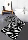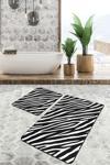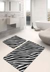 Siyah beyaz zebra desenli bu 2'li banyo paspas seti, modern ve şık çizgileriyle banyonuza stil katmak için tasarlanmıştır.