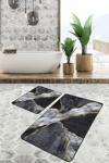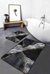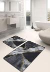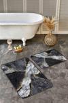 Siyah ve gri tonlarında mermer desenli şık 2'li banyo paspas seti, banyolarınıza zarif ve modern bir dokunuş katmak için tasarlandı.